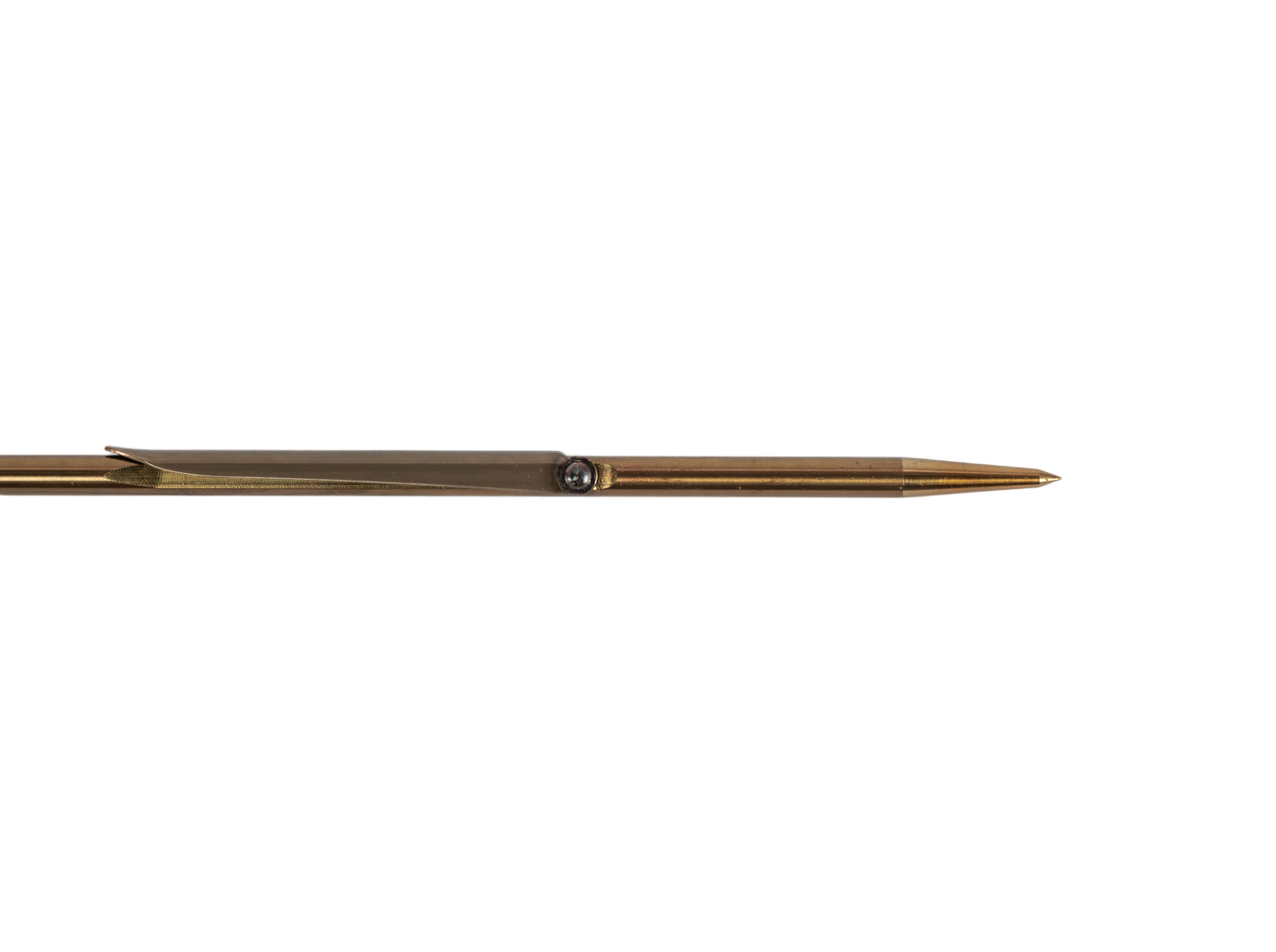 Asta per fucile ad elastico con 3 pinnette forate (60-90-360 mm dal codolo). Punta conica. Diametro 6,50 MM / Lunghezza 115 cm