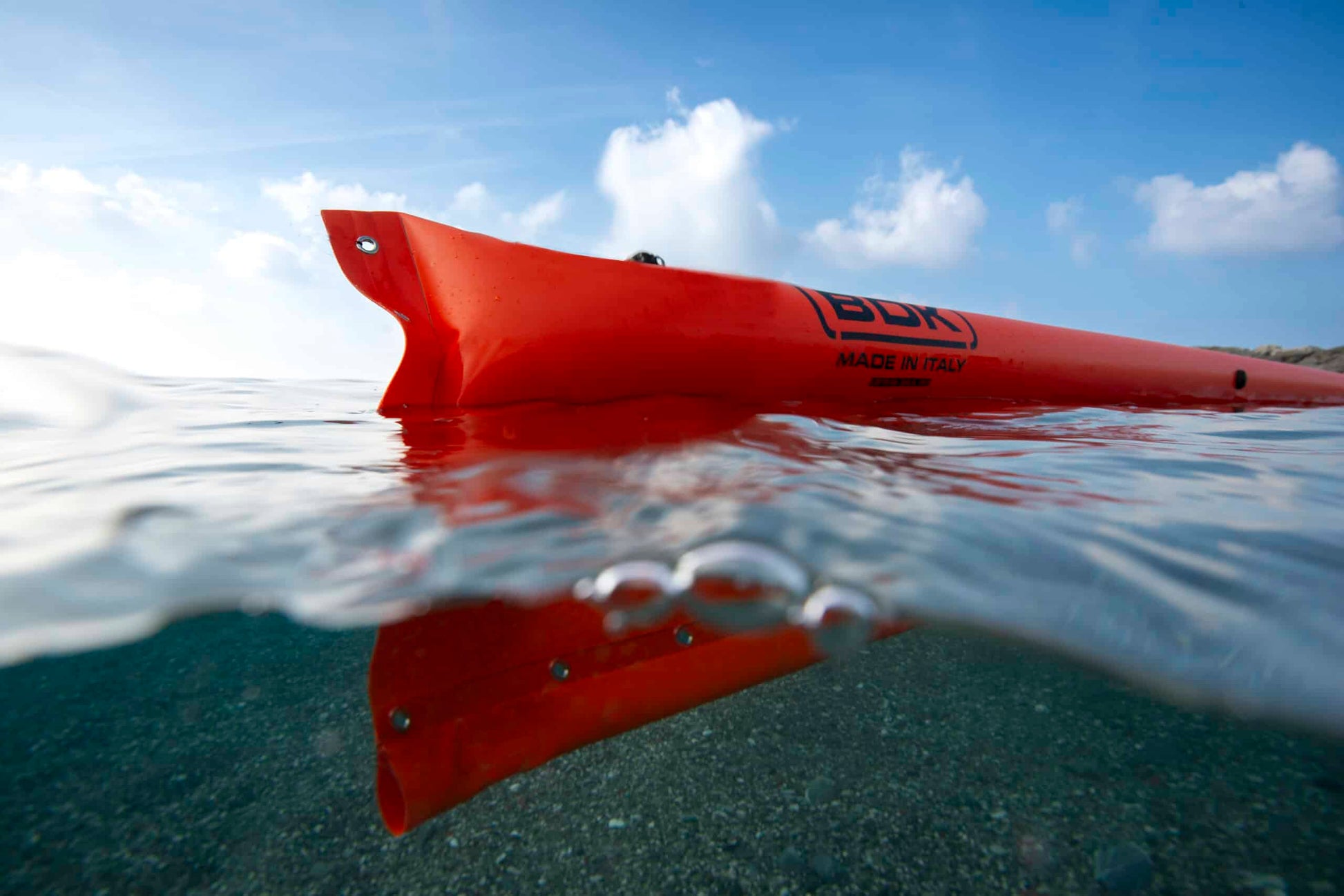 La parte sommersa della barriere chiamata “Gonna” è di 30 cm. Per “Gonne” più lunghe BDK ha realizzato un sistema di collegamento rapido, che permette di raggiungere la lunghezza desiderata semplicemente collegando lo spezzone sommerso già esistente tramite occhielli predisposti sulla parte sommersa lunga 30
