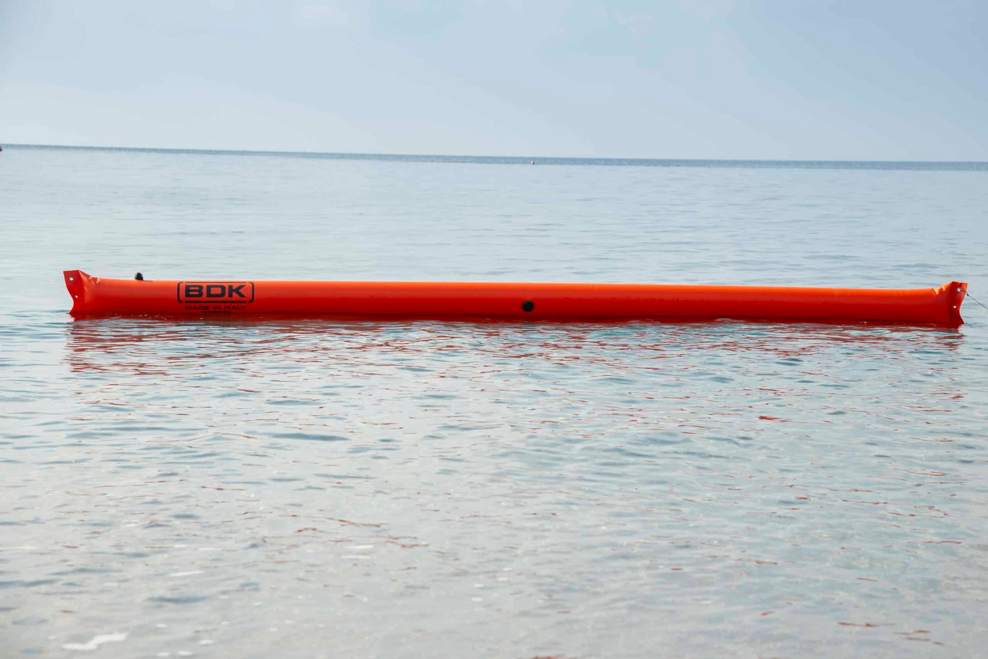 Le barriere vengono realizzate in PVC Oil Boom, materiale resistente agli idrocarburi. La parte galleggiante è formata da un cilindro gonfiabile tramite valvole “Boston” con diametro di 28 cm; diametri superiori possono essere realizzati su richiesta degli utilizzatori. La lunghezza degli spezzoni è di 5 metri.
