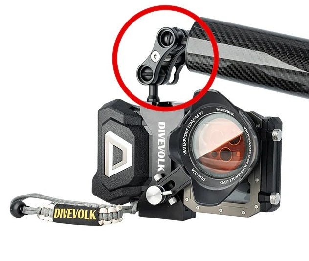 Morsetto a snodo sferico universale per attrezzature fotografiche subacquee