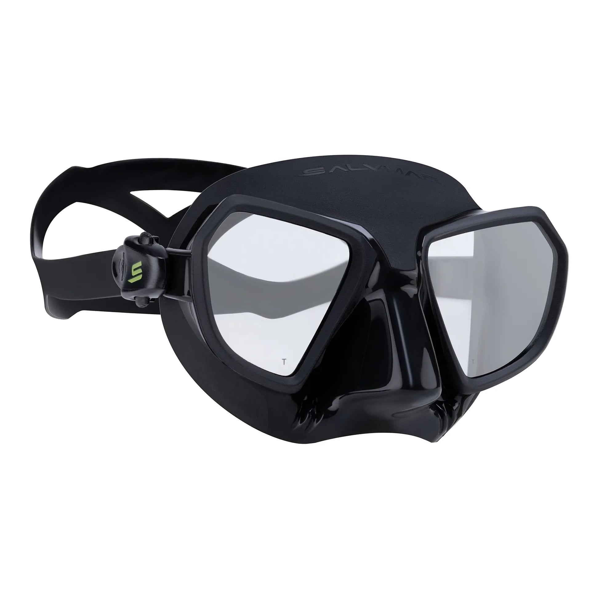 SPECIFICHE TECNICHE- Maschera con volume interno ridotto- Tecnologia innovativa con telaio co-stampato- Design del naso preformato- Ampio campo visivo- Fibbia regolabile con fissaggio micrometrico- Vetro temperato ultra resistente- Silicone interno opaco- Facciale 100% silicone anallergico- Design e Technical Concept made in Salvimar