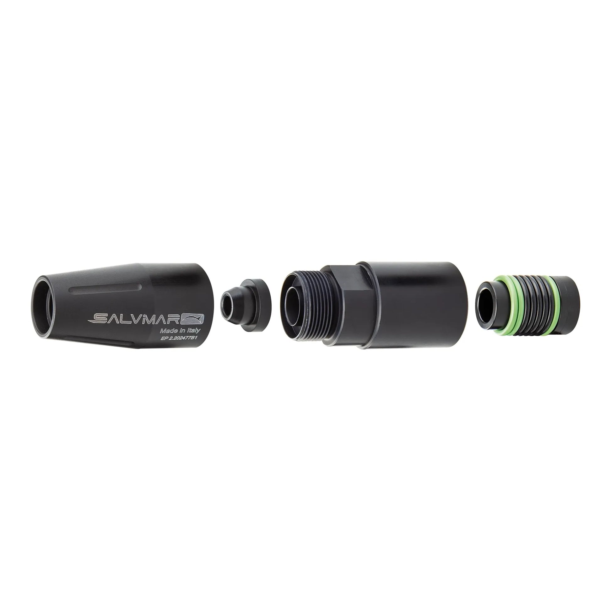 La testata sottovuoto in alluminio alleggerito è progettata con un design ottimizzato per ridurre la resistenza idrodinamica, consentendo una maggiore velocità di uscita dell'asta e migliorando la precisione del tiro. I componenti inclusi, come l'ogiva, la guarnizione di tenuta corpo e la boccola di ammortizzo, sono fondamentali per garantire la tenuta stagna del fucile e la sua durata nel tempo.