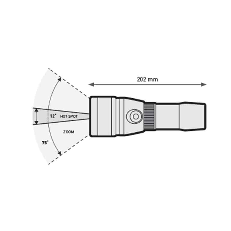 - Custodia imbottita con cerniera: offre protezione ed è comoda per riporre la torcia dopo l'uso.